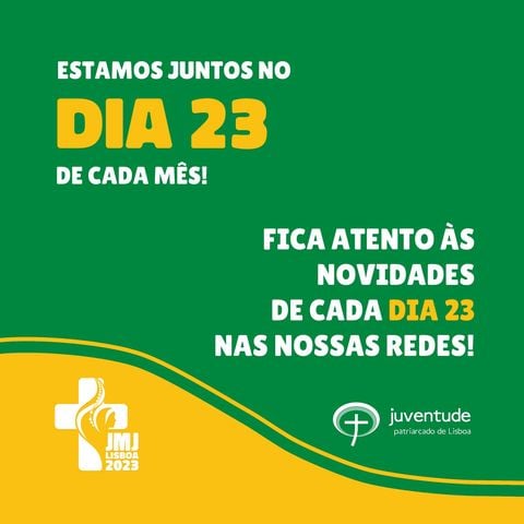 No âmbito da preparação para a próxima Jornada Mundial da Juventude, que terá lugar em Lisboa, todos os jovens do Patriarcado de Lisboa são convidados para uma iniciativa mensal, chamada “DIA 23”!