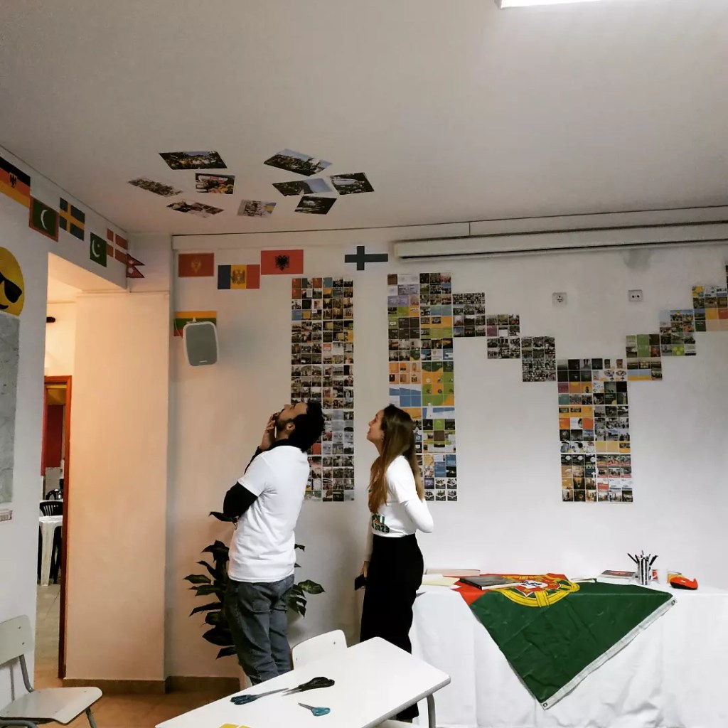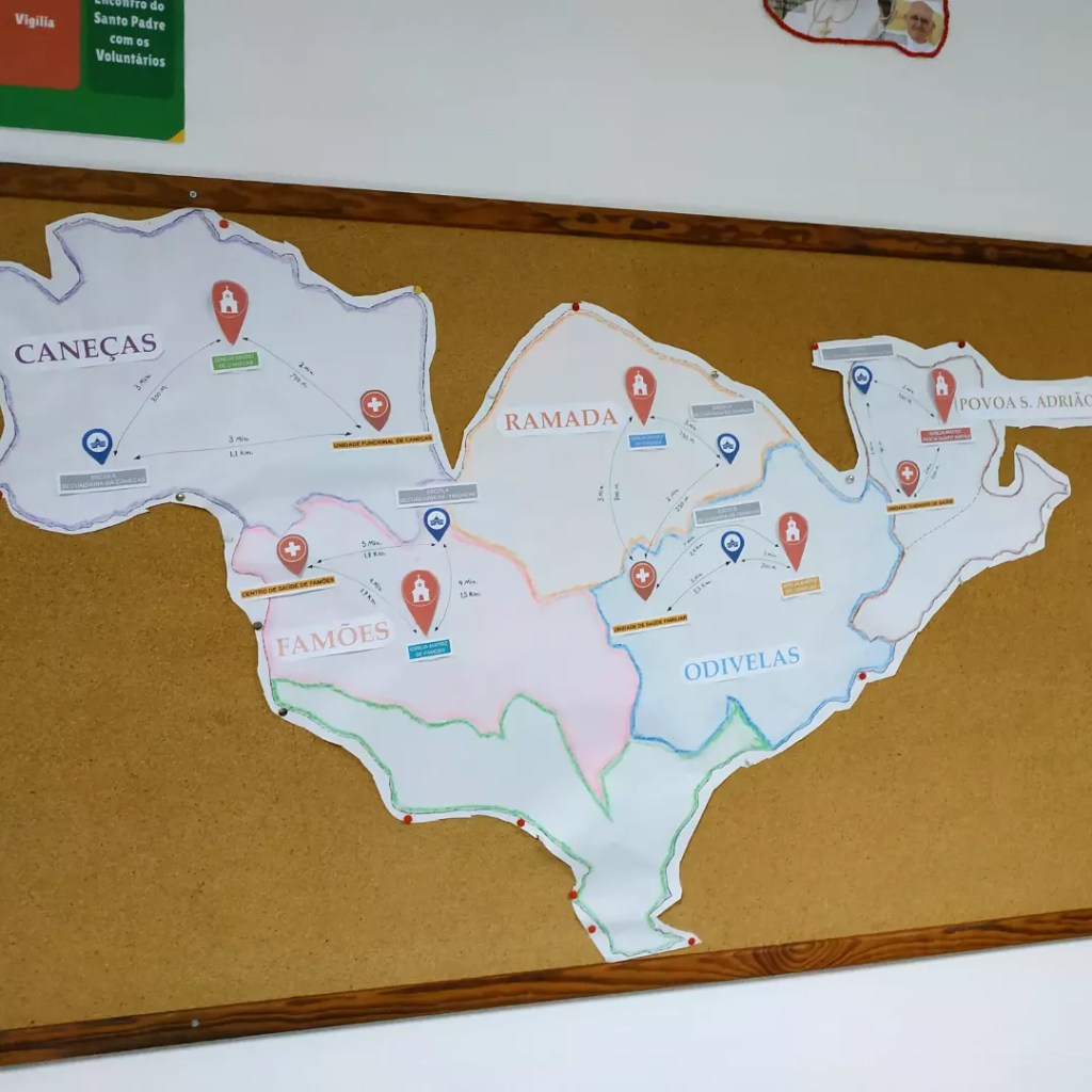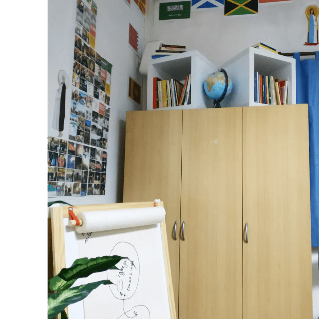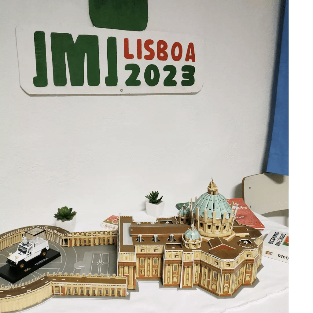 Mostramos aqui alguns detalhes desta sala das Patameiras, transformada praticamente na íntegra pelo padre Juliano, para acolher todos/as: não só quem está a trabalhar de forma mais próxima para este evento na nossa Paróquia, mas também todos os que se queiram envolver nesta caminhada até à Jornada Mundial da Juventude – ou estejam apenas curiosos! 🧐